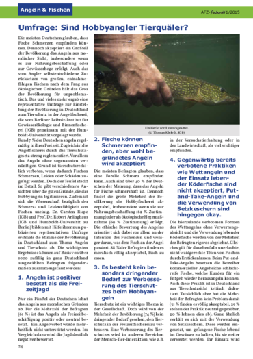 Cyrus, E.-M., Riepe, C., Arlinghaus, R. (2015). Umfrage: Sind Hobbyangler Tierquäler? AFZ-Fischwaid, 2015/1, 24-25