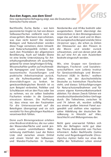 Bachforelle, Äsche, Barbe – wer kein passionierter Angler ist, hat von diesen Süßwasserfischen vielleicht noch nie etwas gehört. Aber kann man schützen,was man nicht kennt? Die meisten Biologen und Naturschützer würden diese Frage verneinen, denn Umwelt und Naturschutzpolitik richten sich nach den Prioritäten der allgemeinen Bevölkerung. Auch auf lokaler Ebene ist eine breite Unterstützung für Arterhaltungsmaßnahmen oft ausschlaggebend für einen langfristigen Erfolg. Wissenschaftler greifen auf multimediale Kampagnen und Science Slams, taxonomische Ausstellungen und praktische Arbeitseinsätze zurück, um die Aufmerksamkeit auf Biodiversitätsfragen zu lenken. Im gewässerökologischen Bereich ist es zum Beispiel verbreitet, Politiker und Schulklassen mit an den Fluss oder See zu nehmen, wo sie selber bedrohte Fischarten wieder in die Gewässereinsetzen können. Die Hoffnung ist, dass etwas von der Faszination für die Unterwasserwelt auf die Beteiligten überspringt und sie sich verstärkt für ihre glitschigen Nachbarn verantwortlich fühlen.