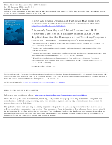 Skov, C., Koed, A., Baastrup-Spohr, L-, Arlinghaus, R. (2011). Dispersal, growth, and diet of stocked and wild northern pike fry in a shallow natural lake, with implications for the management of stocking programs. North American Journal of Fisheries Management, 31, 1177–1186