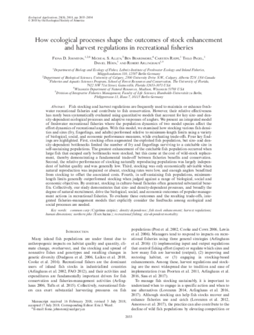 Johnston, F. D., Allen, M. S., Beardmore, B., Riepe, C., Pagel, T., Hühn, D., Arlinghaus, R. (2018). How ecological processes shape the outcomes of stock enhancement and harvest regulations in recreational fisheries. Ecological Applications, 28(8), 2033-2054