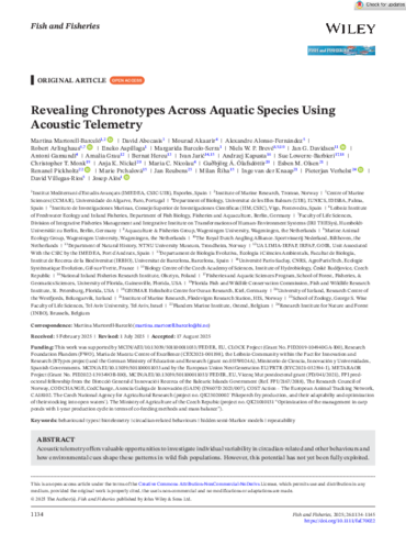 Martorell-Barceló, M., Abecasis, D., Akaarir, M., Alonso-Fernández, A., Arlinghaus, R., Aspillaga, E., Barcelo-Serra, M., Brevé, N. W.P., Davidsen, J. G., Gamundí, A., Grau, A., Hereu, B., Jarić, I., Kapusta, A., Lowerre-Barbieri, S., Monk, C. T., Nickel, A. K., Nicolau, M. C., Ólafsdóttir, G., Olsen, E. M., Pickholtz, R., Prchalová, M., Reubens, J., Říha, M., van der Knaap, I., Verhelst, P., Villegas-Ríos, D., & Alós, J. (2025). Revealing chronotypes across aquatic species using acoustic telemetry. Fish and Fisheries, 26(6), 1134-1145. https://doi.org/10.1111/faf.70022