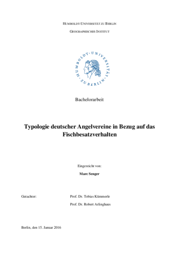 Senger, M. (2016). Typologie deutscher Angelvereine in Bezug auf das Fischbesatzverhalten. Bachelor Thesis, Humboldt-Universität zu Berlin Geographisches Institut